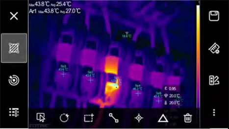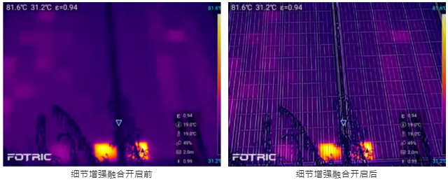 Fotric 368的細節增強融合成像技術,支持在熱像圖上融合可見光輪廓細節,能準確鎖定故障的具體位置。