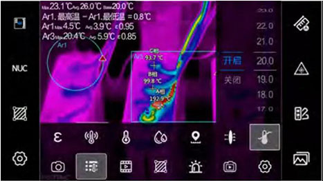 Fotric 368支持設置各區域不同的發射率,在一些復雜的場景中,可以實現不同材質單獨準確測量,更能保證測溫的準確性。