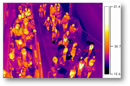 紅外熱成像測(cè)溫儀在人流量大、密集型區(qū)域,如學(xué)校、商場(chǎng)、銀行、證券交易所、影院、集市等公共場(chǎng)所;采用篩查型測(cè)溫方式,快速實(shí)現(xiàn)對(duì)發(fā)熱人員篩查,避免手工篩查造成的人員擁擠和聚集。在接近人流通過(guò)的出入口區(qū)域,設(shè)置雙光譜測(cè)溫?cái)z像機(jī),鏡頭對(duì)準(zhǔn)出入通道,測(cè)溫?cái)z像機(jī)設(shè)置一個(gè)接近發(fā)熱(譬如:37.3℃)的報(bào)警閥值,當(dāng)人流中有達(dá)到或超過(guò)這個(gè)閥值,后端平臺(tái)報(bào)警提醒工作人員,可以對(duì)發(fā)熱可疑人員進(jìn)行二次測(cè)溫,既能快速篩查,也可避免工作人員一對(duì)一近距離接觸式測(cè)溫工作,形成交叉感染的風(fēng)險(xiǎn)。