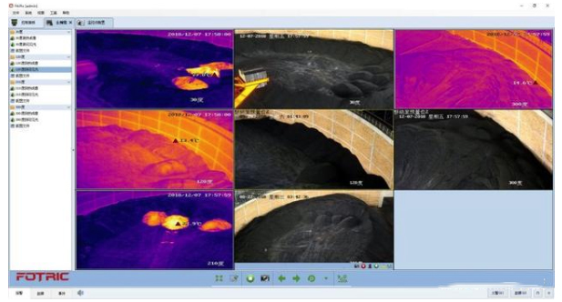 .圓形煤倉采用三套 Fotric 826-L28-424 雙視云臺防火報警智能熱像(1 個煤倉 3 個),1 套 Fotric FAIRs-10 監控軟件。
