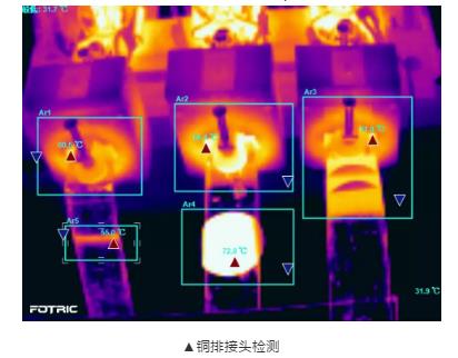 3、在夏天和冬天檢測某電氣接頭,都測出60℃,那么所反映出的設(shè)備狀況一樣嗎?當(dāng)然不是,因為環(huán)境溫度不同,夏天為32℃,而冬天是-5℃。通過FOTRIC 360系列的“全屏溫升計算功能”,可以自動得出,該電氣接頭在夏天溫升為28℃,冬天的溫升為65℃,說明冬天存在故障隱患。